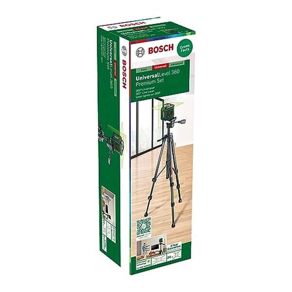 • Laser lignes UnversalLevel 360 de Bosch avec trépied premium (laser lignes vertical et horizontal avec laser à 360° pour un alignement dans toute la pièce)